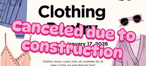 Due to construction we will not have our monthly clothing pantry. Please join us on February 7th, for our First clothing pantry of the year! If you would like to donate please give us a call at (240) 990-3231!